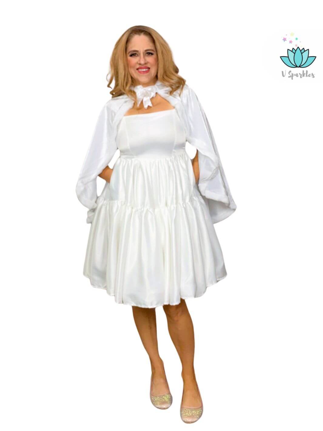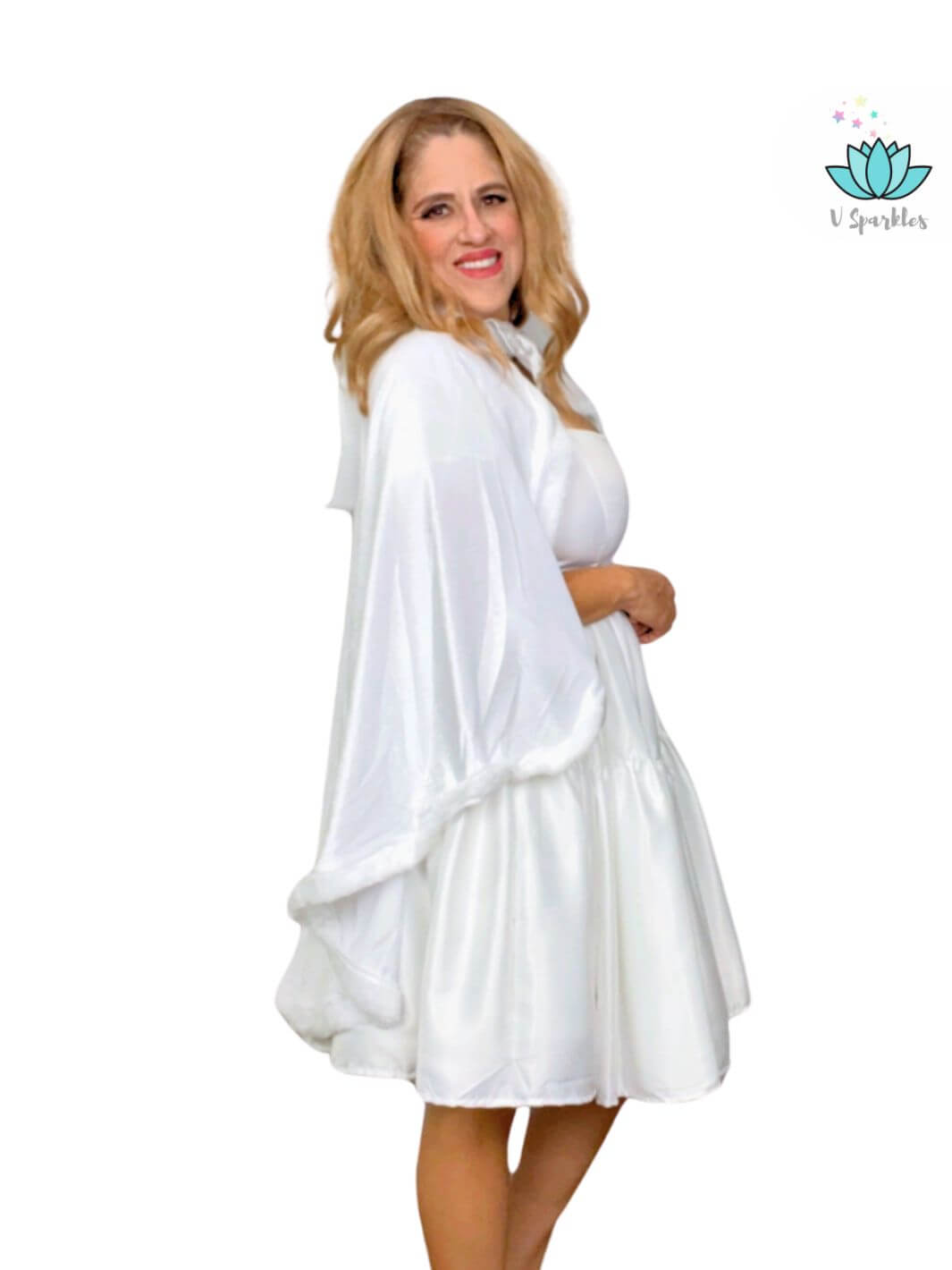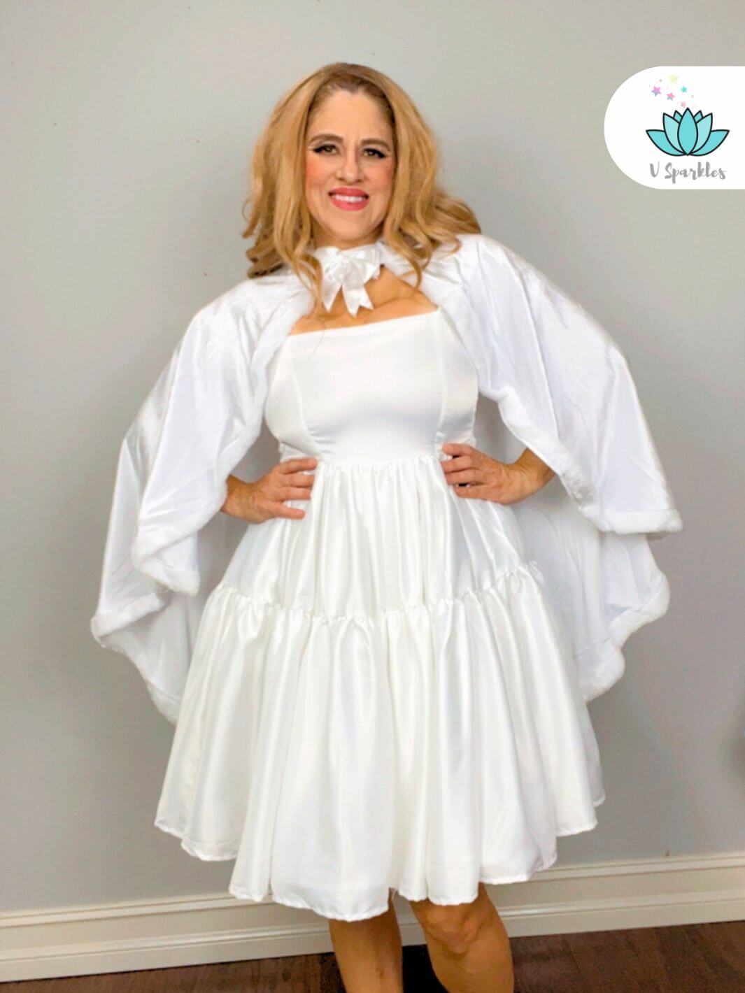 Introducing our Elegant White Dress with Optional White Cape – Available in Plus Sizes.