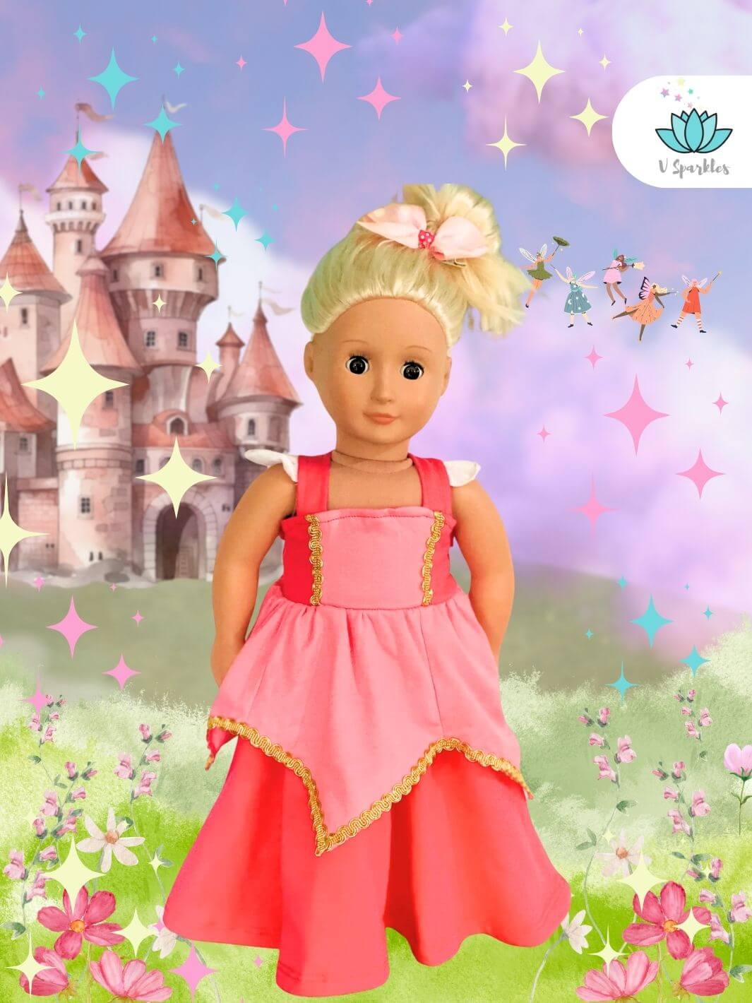 Make it pink princess doll dress that will fit most 18 inches dolls.
