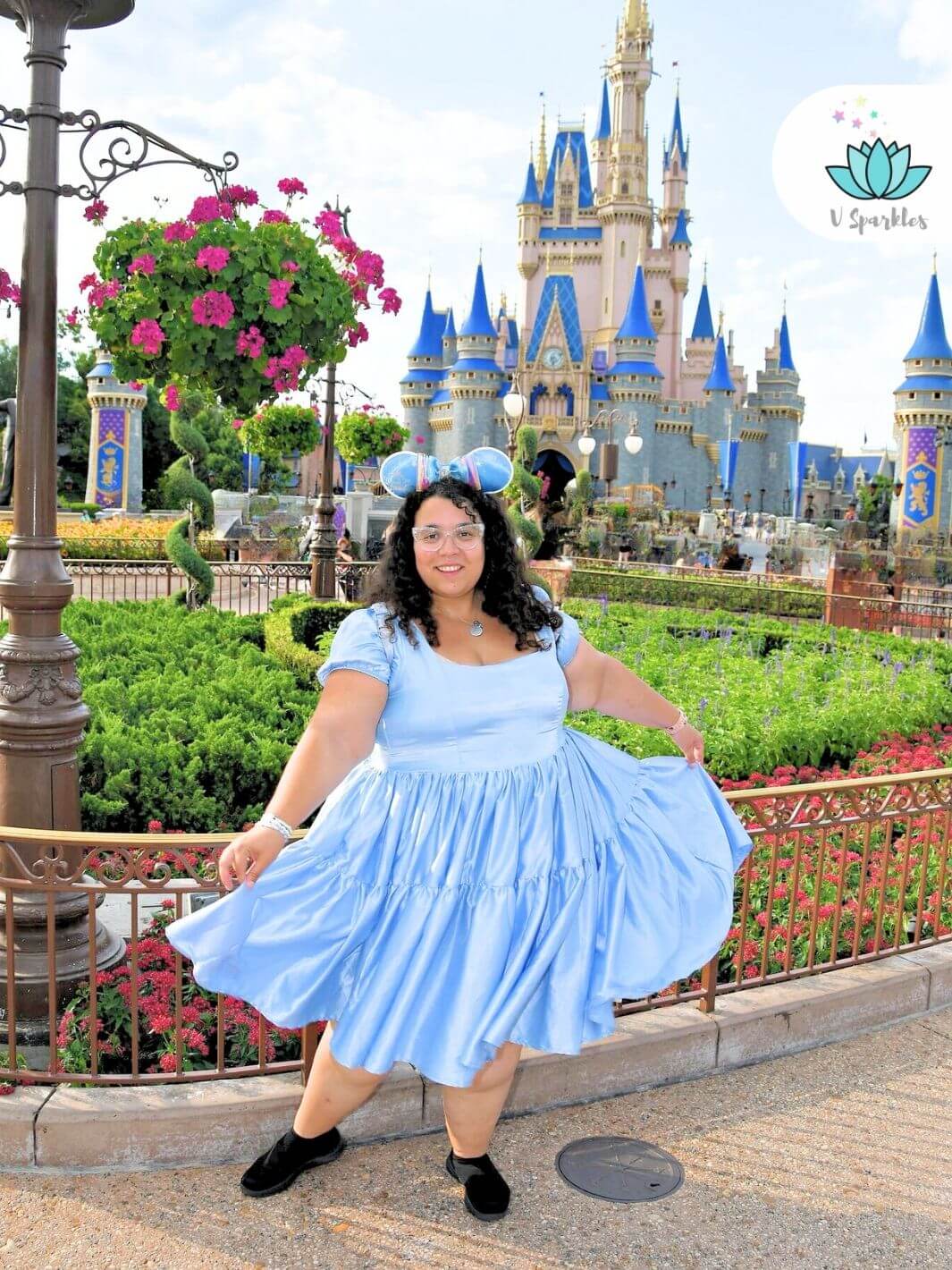 This is the perfect dress for my Cinderella bound! The quality is high. I would recommend sizing up in this dress, especially if you have larger arms. Customer service was amazing, I realised what I ordered was too small and she was able to send me a new one the next day before my trip. This is a heavier dress due to the quality so its not the coolest dress for the parks but it is very worth it to wear. If you take off the apron part could be used for multiple bounds. Will buy other colors!