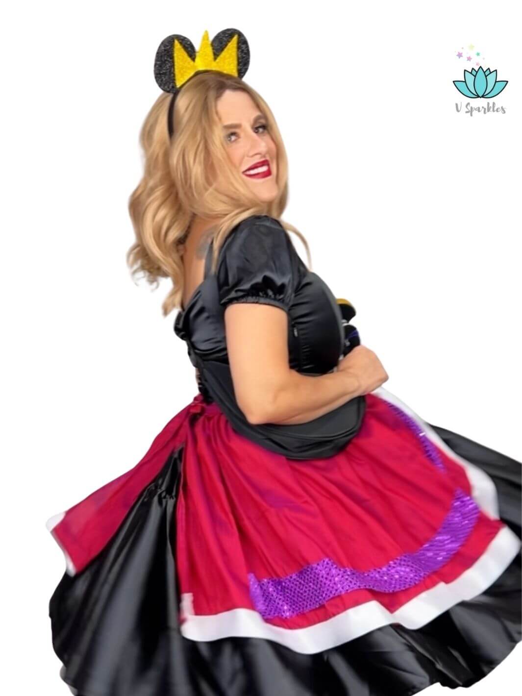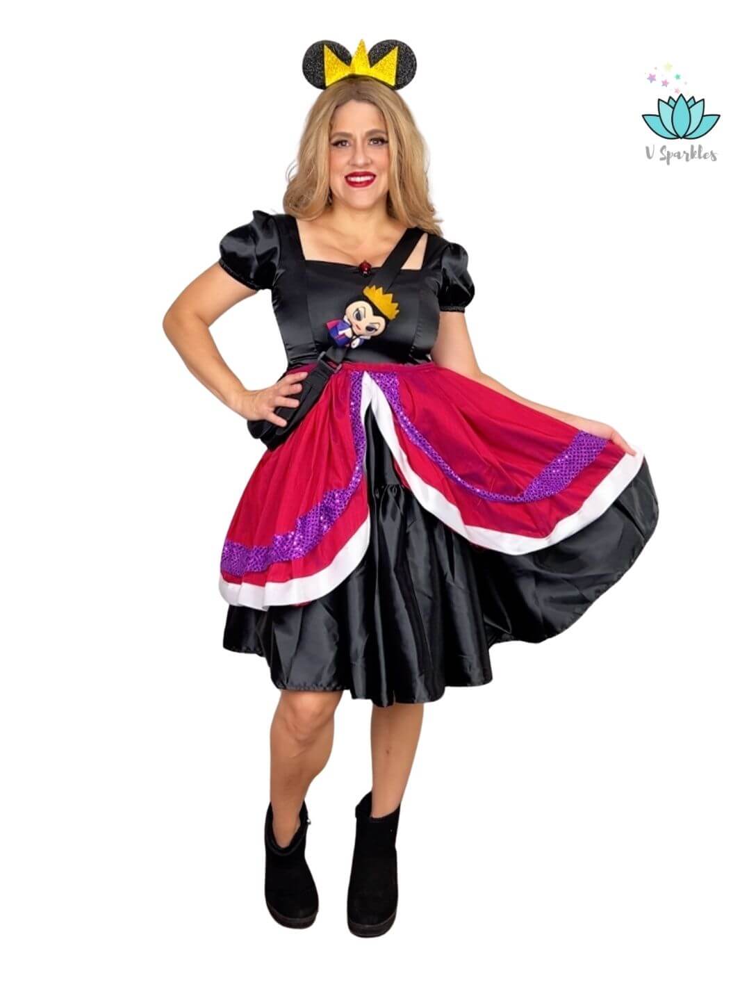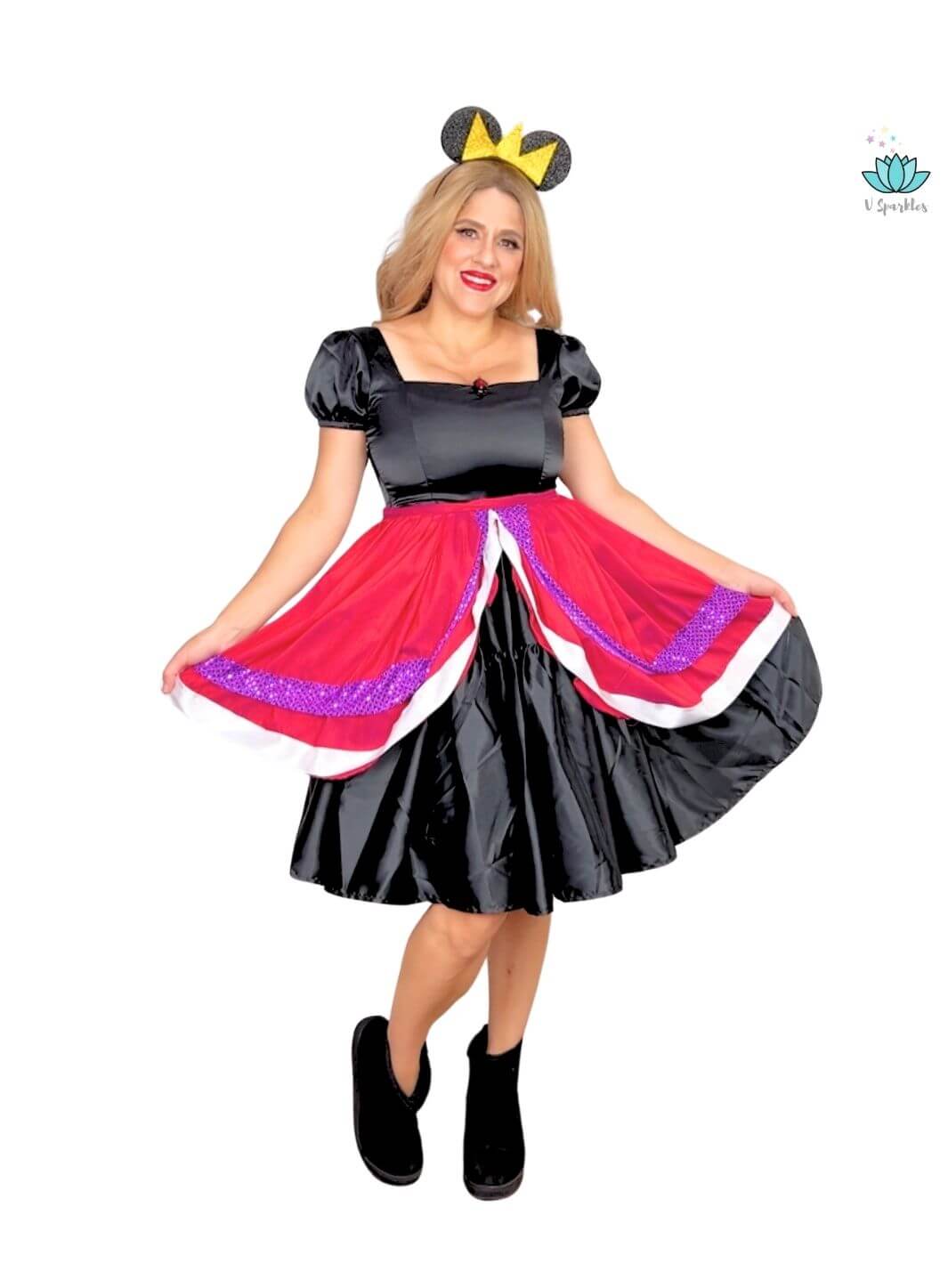 Every Disney villain enthusiast needs a piece like this in their collection. It’s a perfect blend of iconic style and practicality. Embrace the versatility of this piece—swap out the overskirts to transform into different iconic villains, or keep it simple and elegant with just the classic black satin dress.