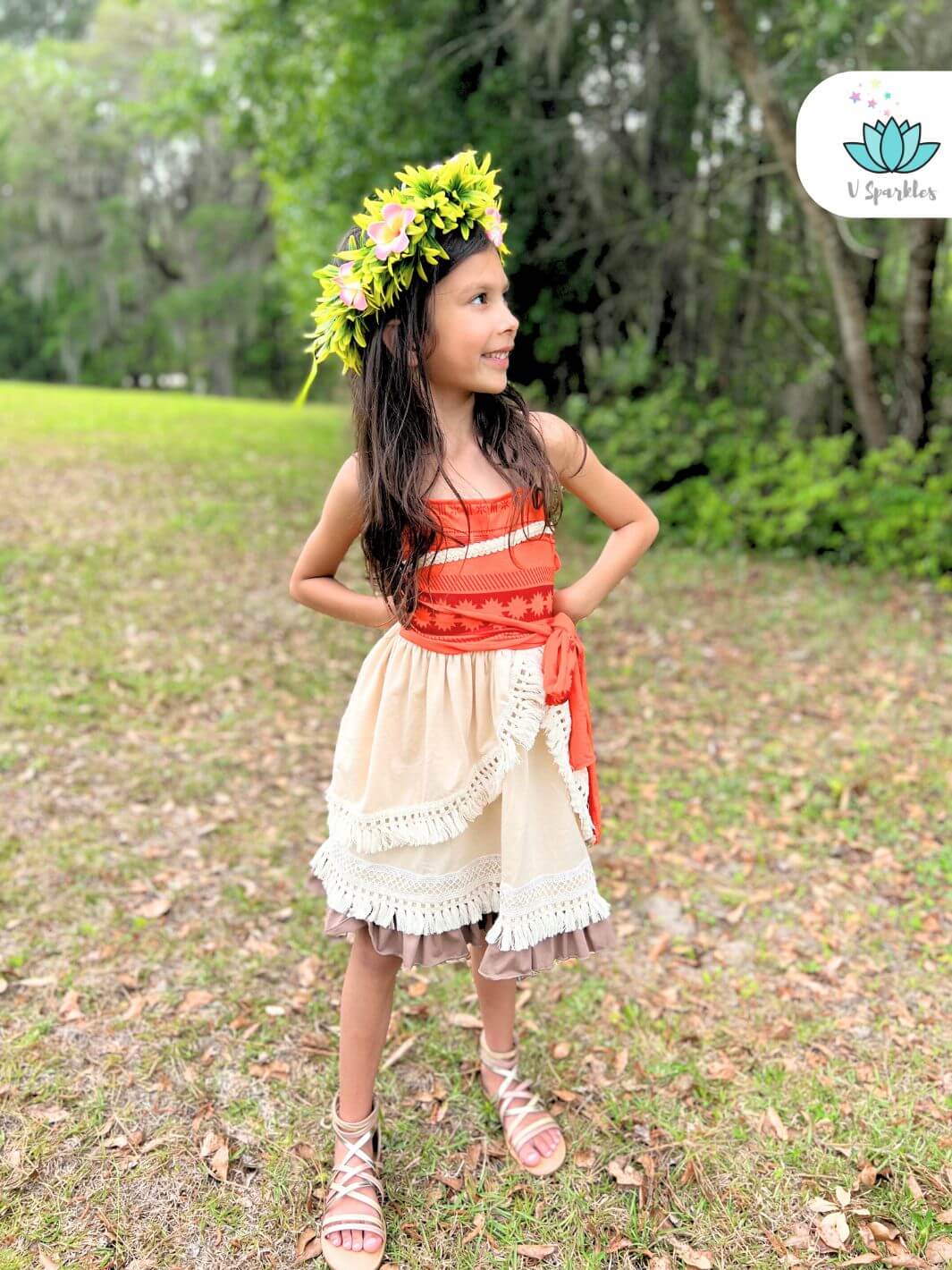 This dress is so cute. Made well and so soft. Perfect for my daughter's Moana birthday. She was so comfortable the whole time.