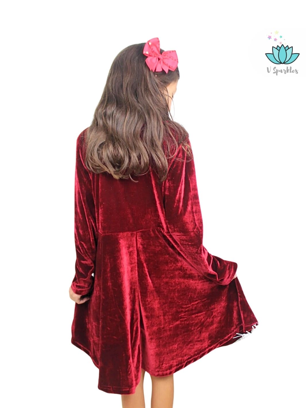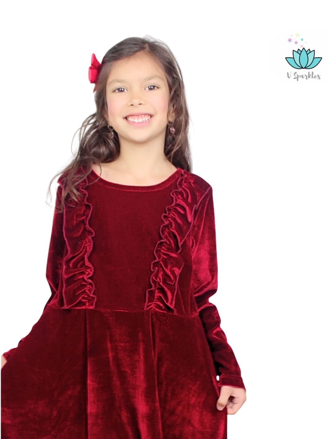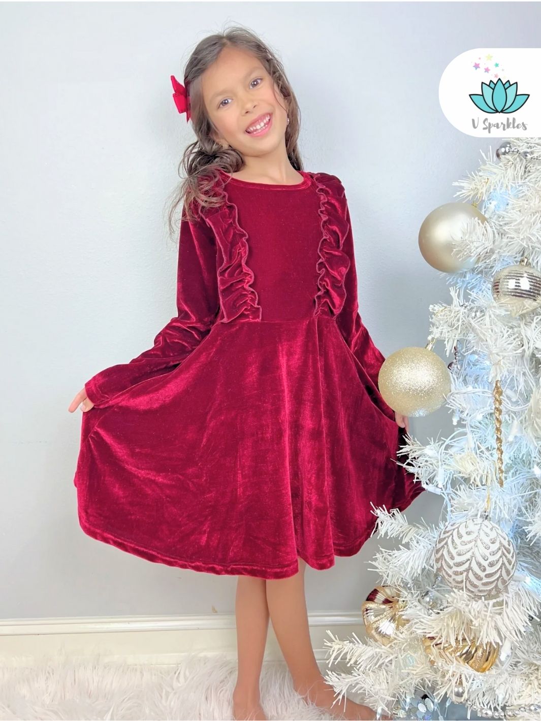 Introducing our Burgundy Velvet Holiday Christmas Dress for Girls