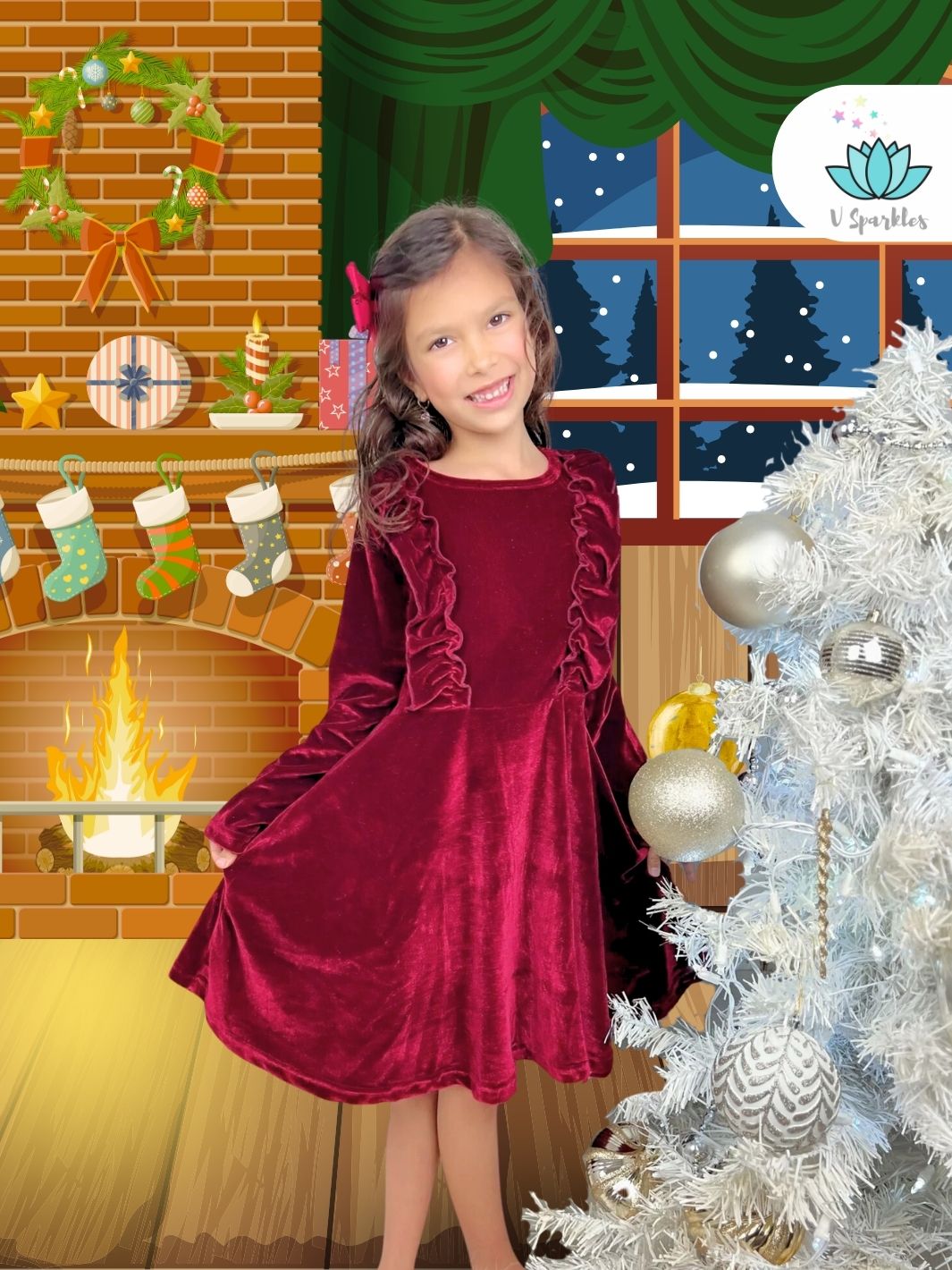 Make your little one’s holiday season memorable with our Burgundy Velvet Holiday Christmas Dress for Girls, designed for elegance and joy!