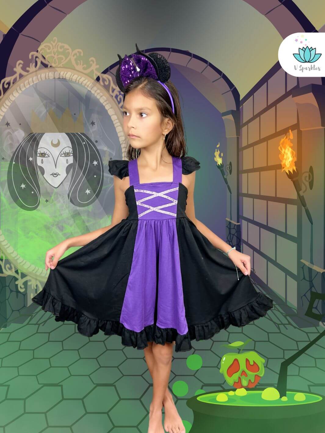 This stunning Evil Queen Cotton Dress lets your little one embrace their inner ruler.