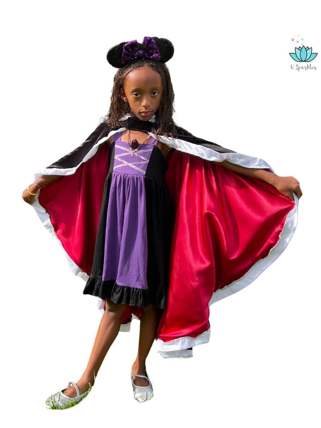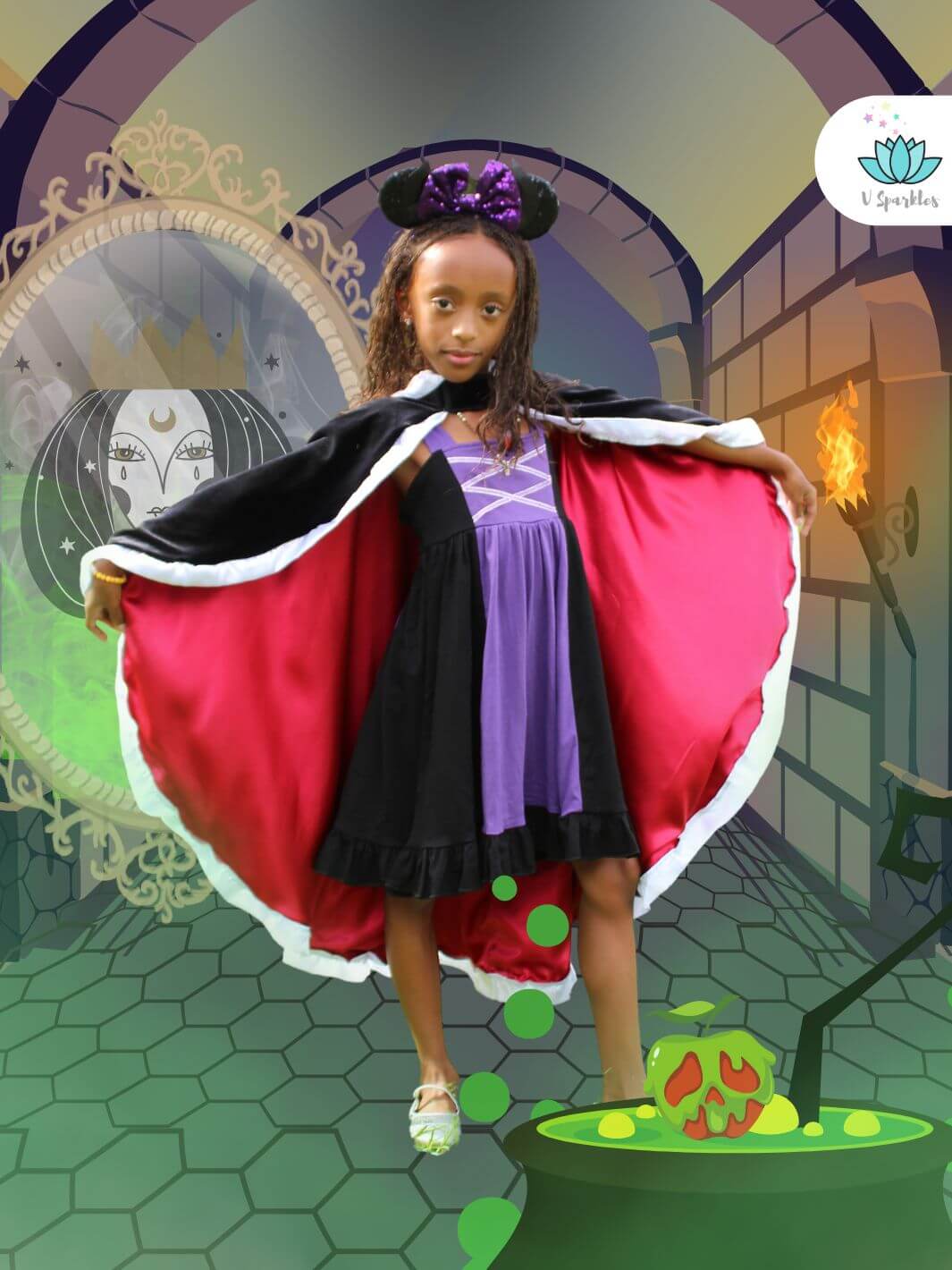 Introducing our Evil Queen Cotton Dress for Kids with Cape Available as an Add-on