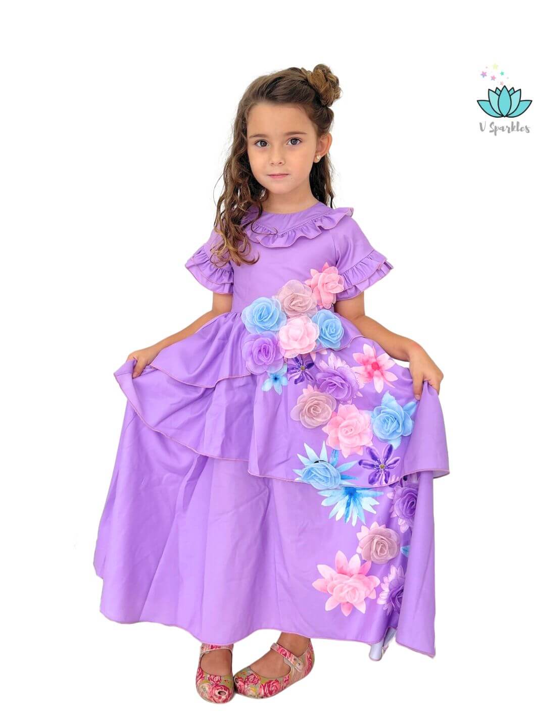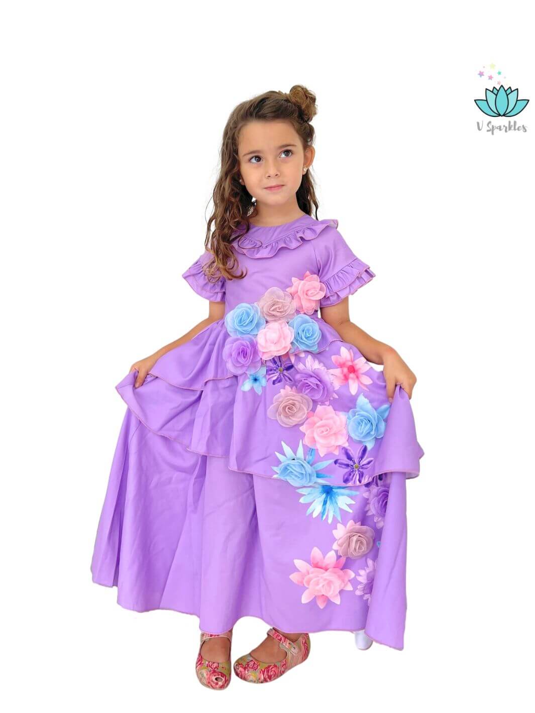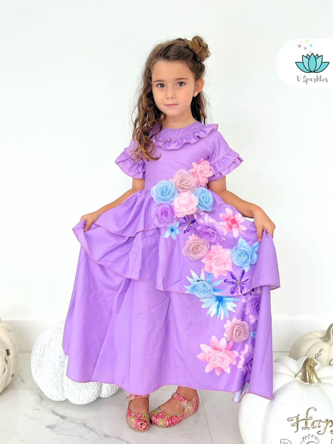 Floral Isabela Dress for Play Pretend: This Isabela-inspired dress for girls is ideal for play pretend and dress-up games. With its layered ruffles and flower accents, it&