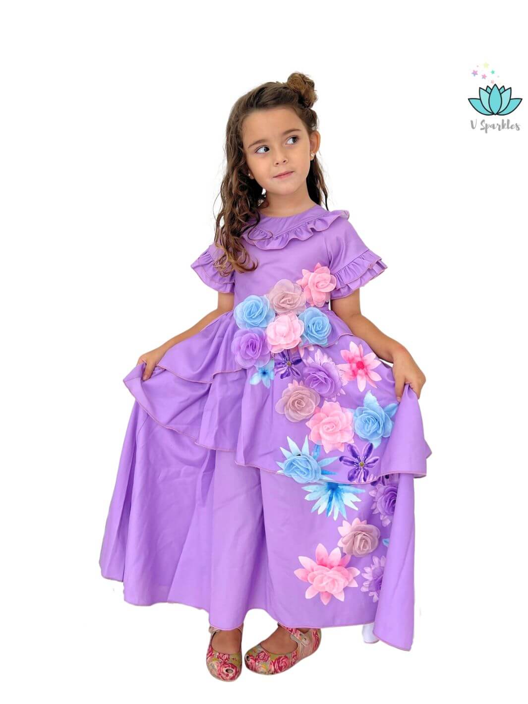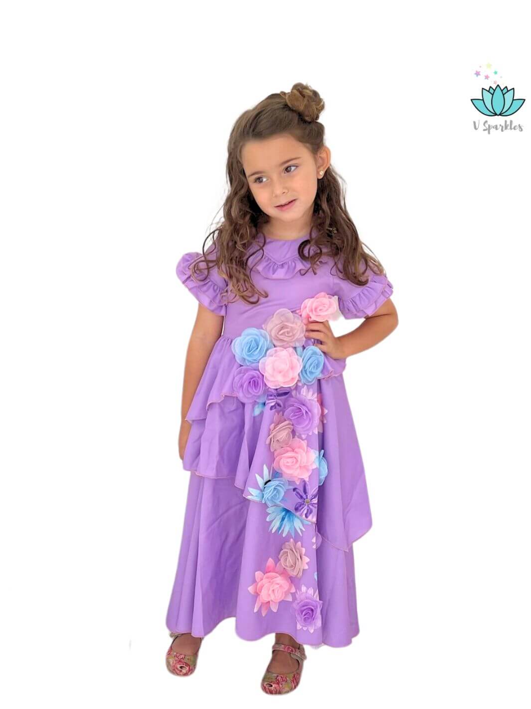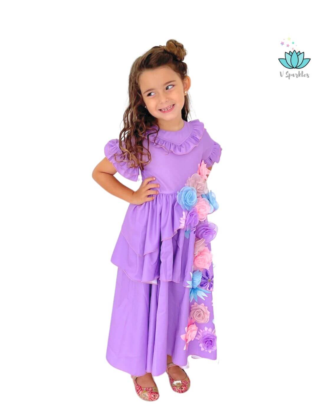 Floral Isabela Dress for Play Pretend: This Isabela-inspired dress for girls is ideal for play pretend and dress-up games. With its layered ruffles and flower accents, it&