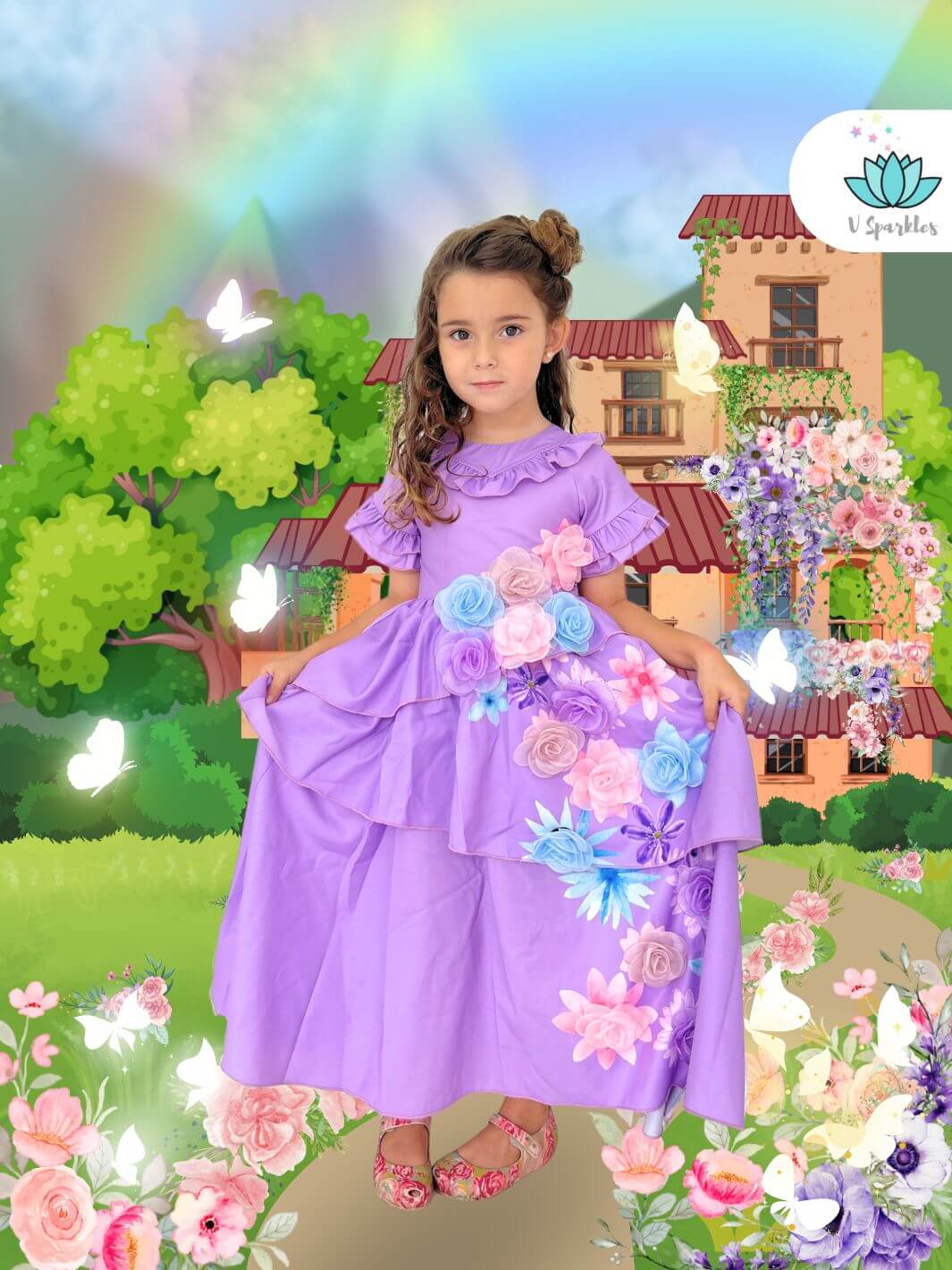 Isabela Floral Dress for Halloween and Dress-Up Games: A magical floral dress inspired by Isabela from Encanto, perfect for Halloween, play pretend, and dress-up games. Great for kids who love to express themselves through fashion.