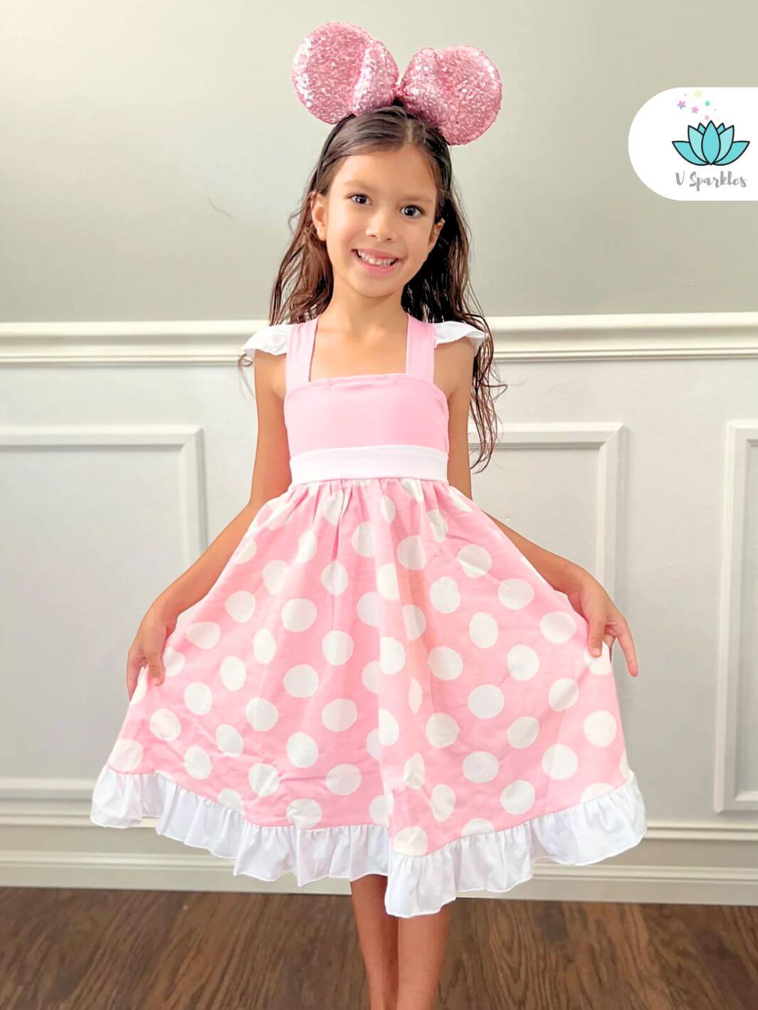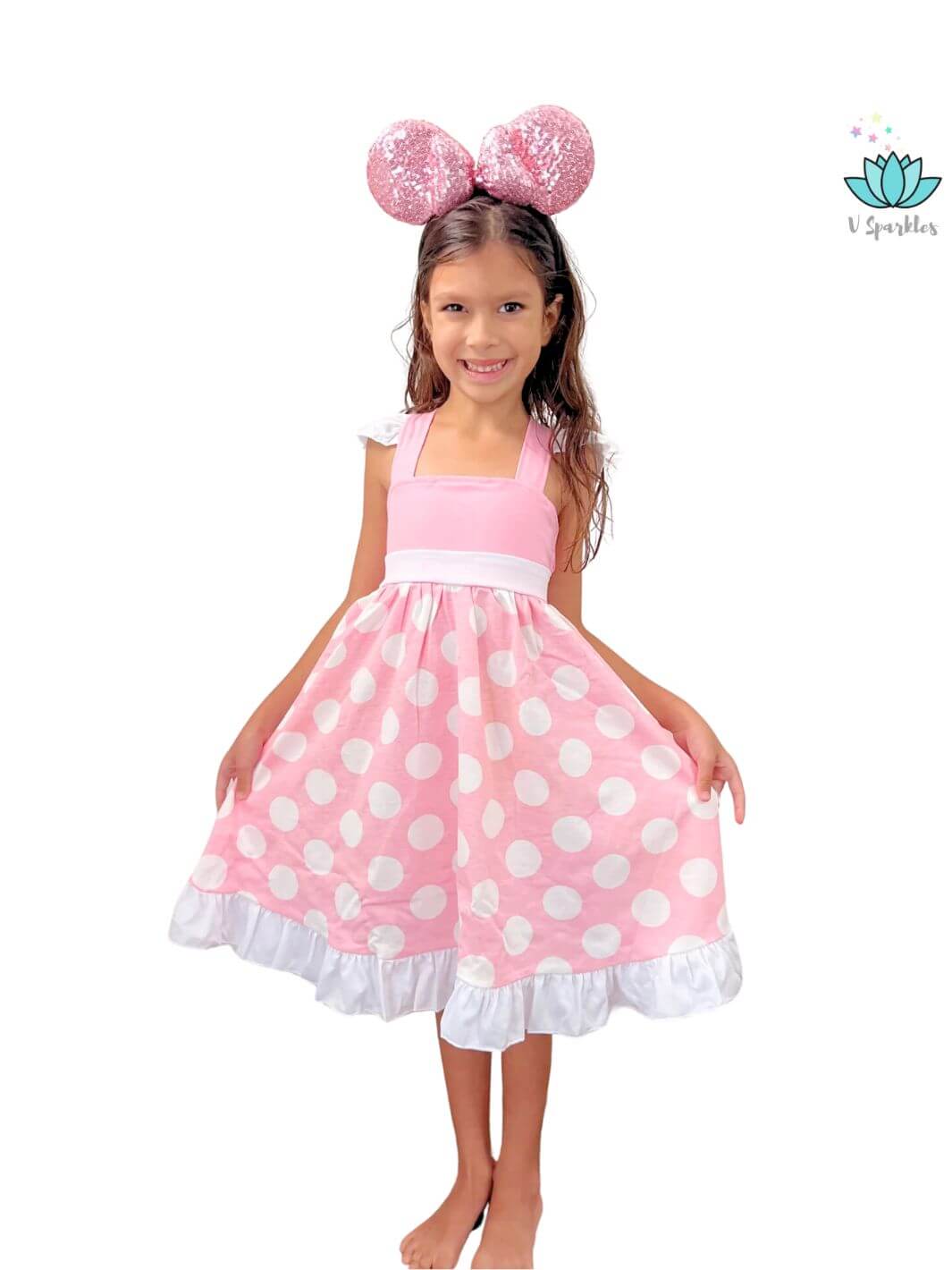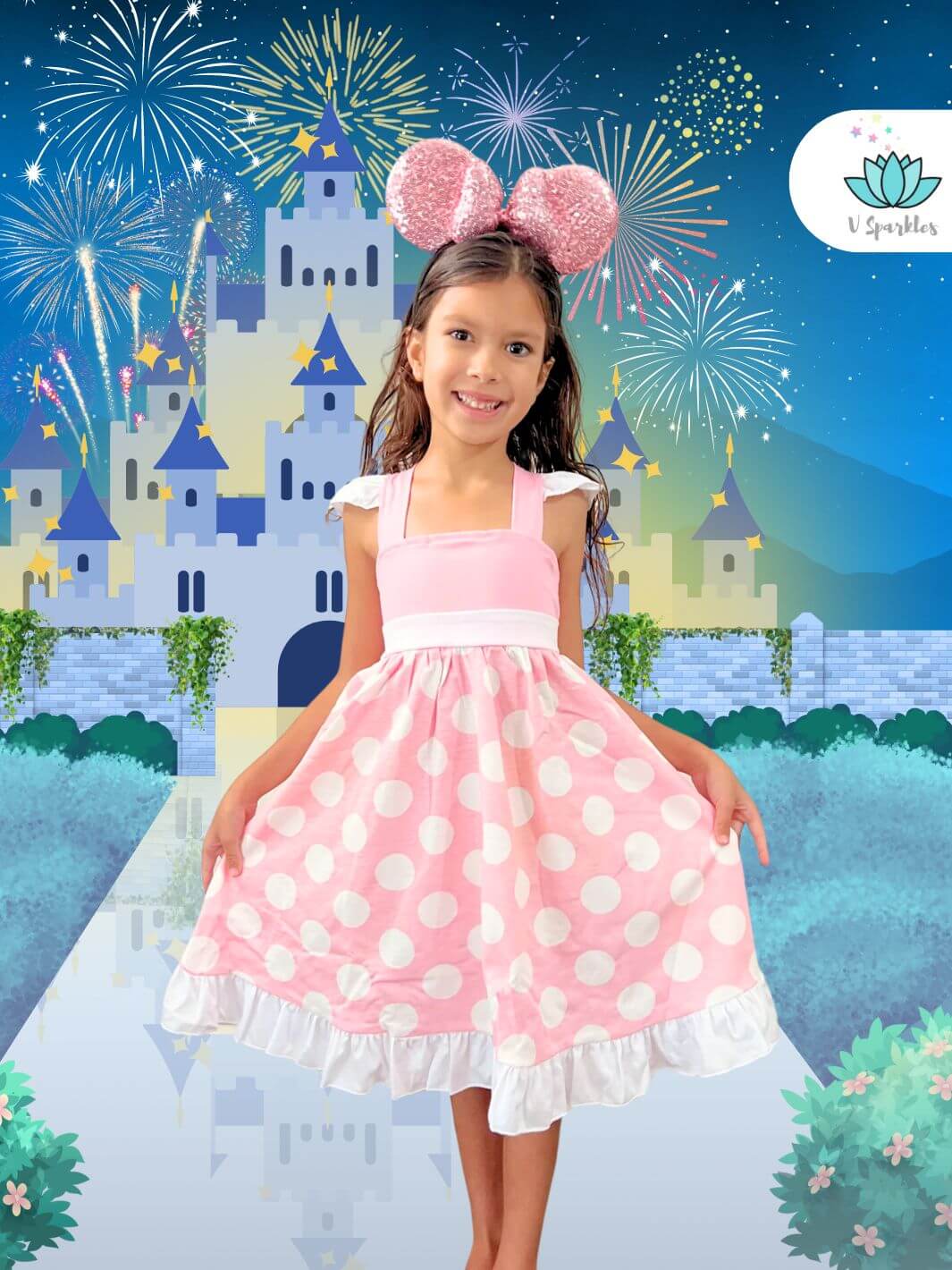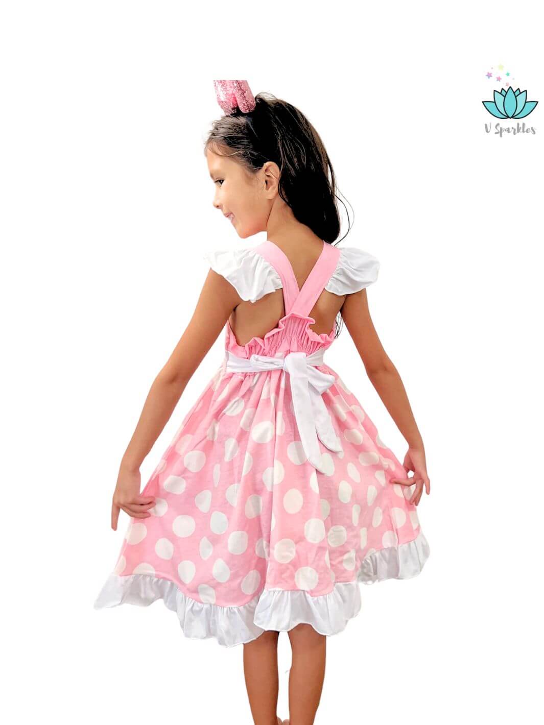 Introducing our cartoon-inspired Pink Miss Mouse Polka Dot Dress.