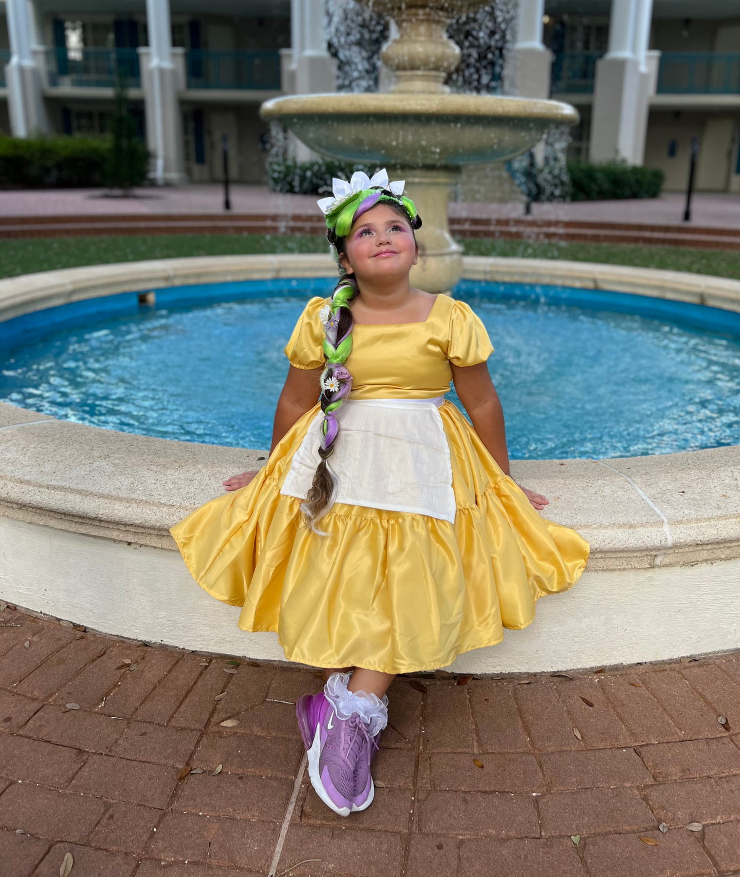 Design: Inspired by the fairytale of a princess and the frog, this twirl dress for kids comes in a beautiful yellow color with puff sleeves