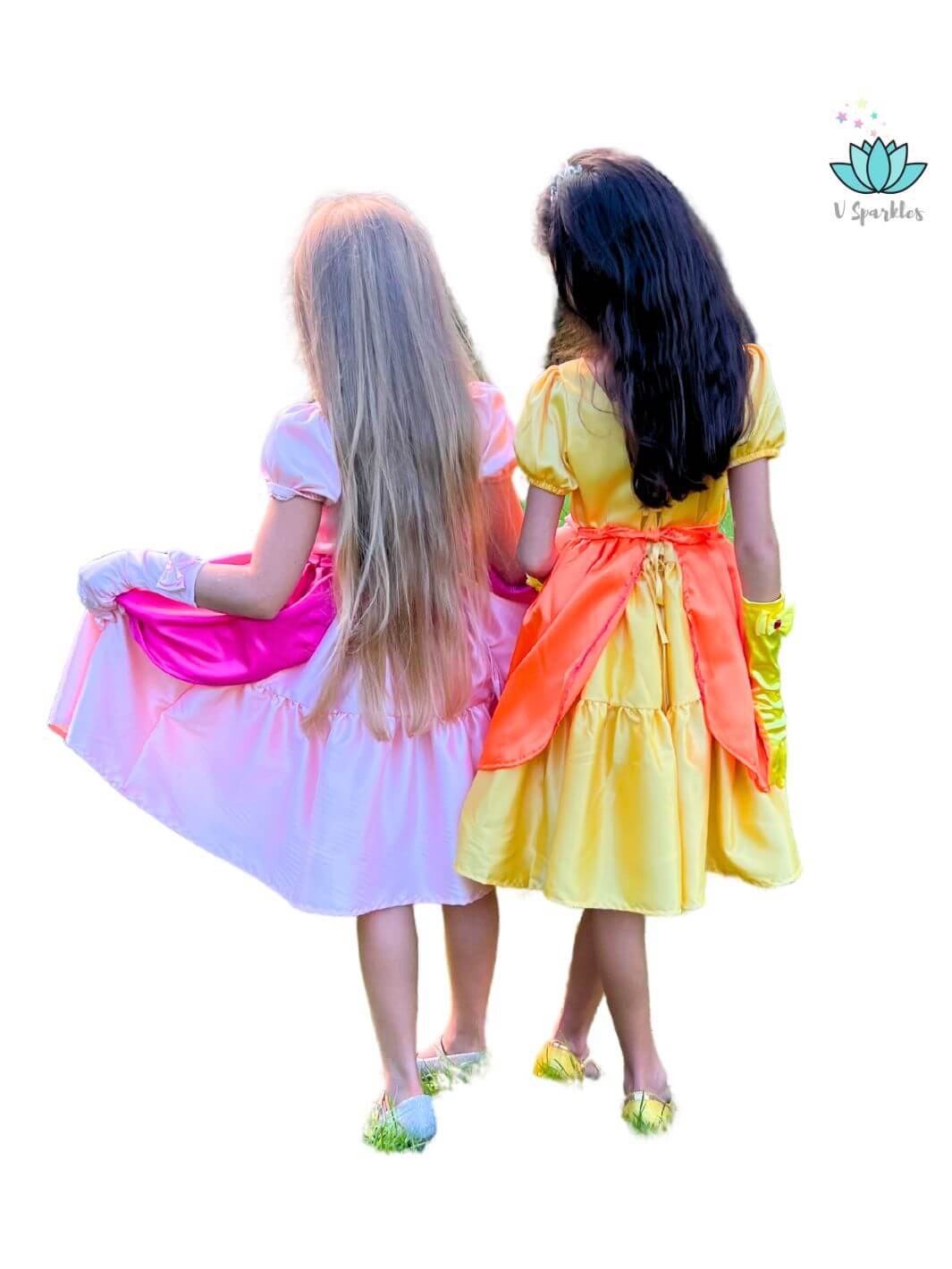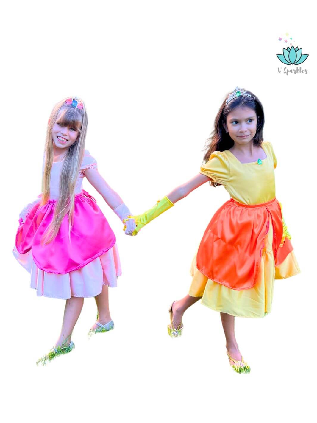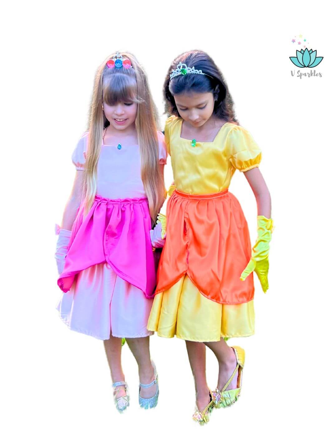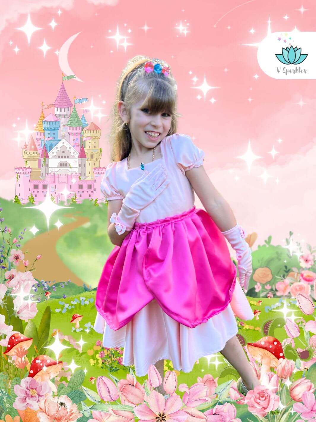 Let your little one step into the world of video game magic with our Pink Princess Video Game Dress Up Overskirt! This soft pink and royal gold-accented overskirt pairs perfectly with the Base Pink Twirl Dress, transforming it into the iconic look of a beloved princess known for her courage and grace.