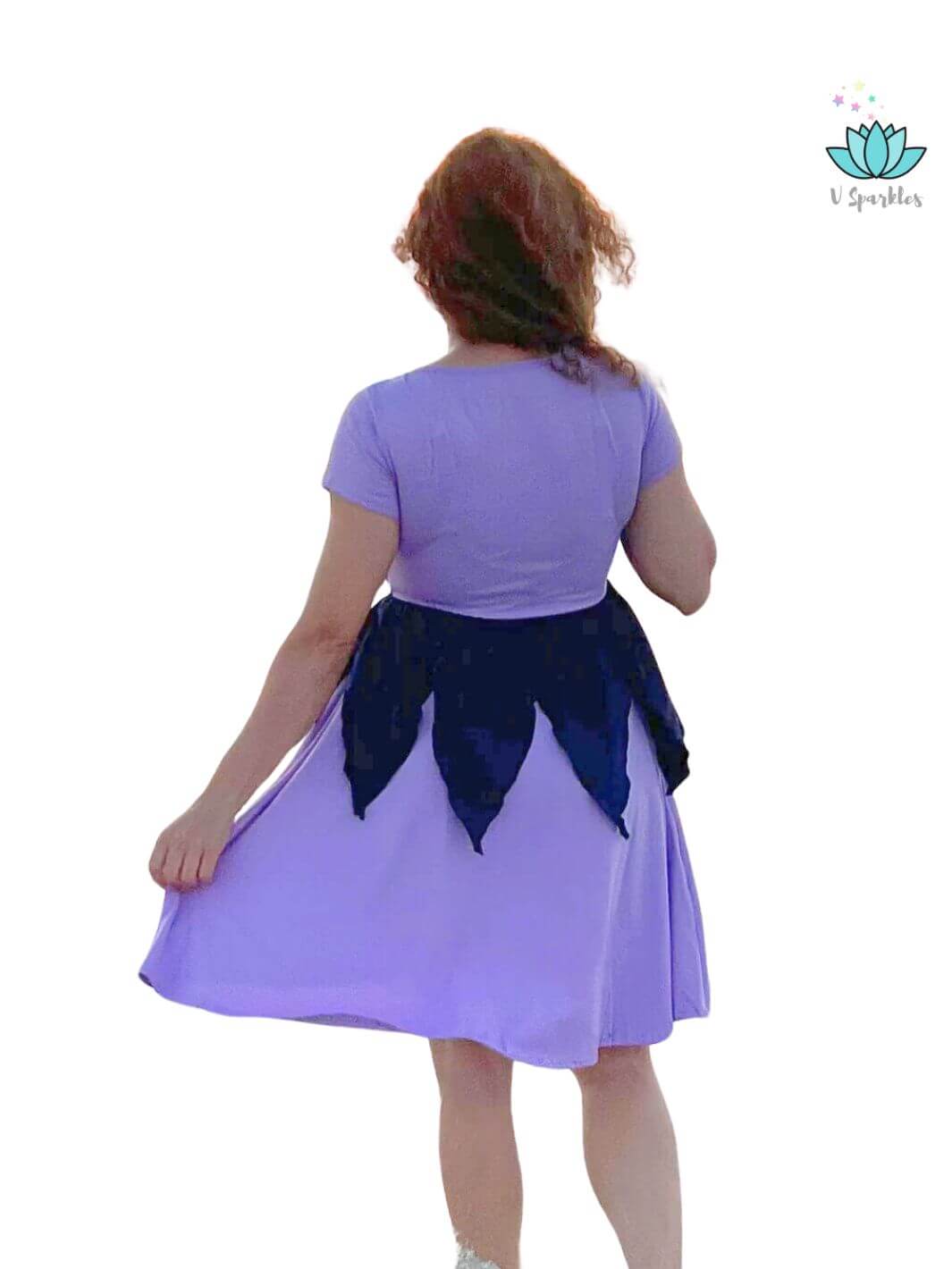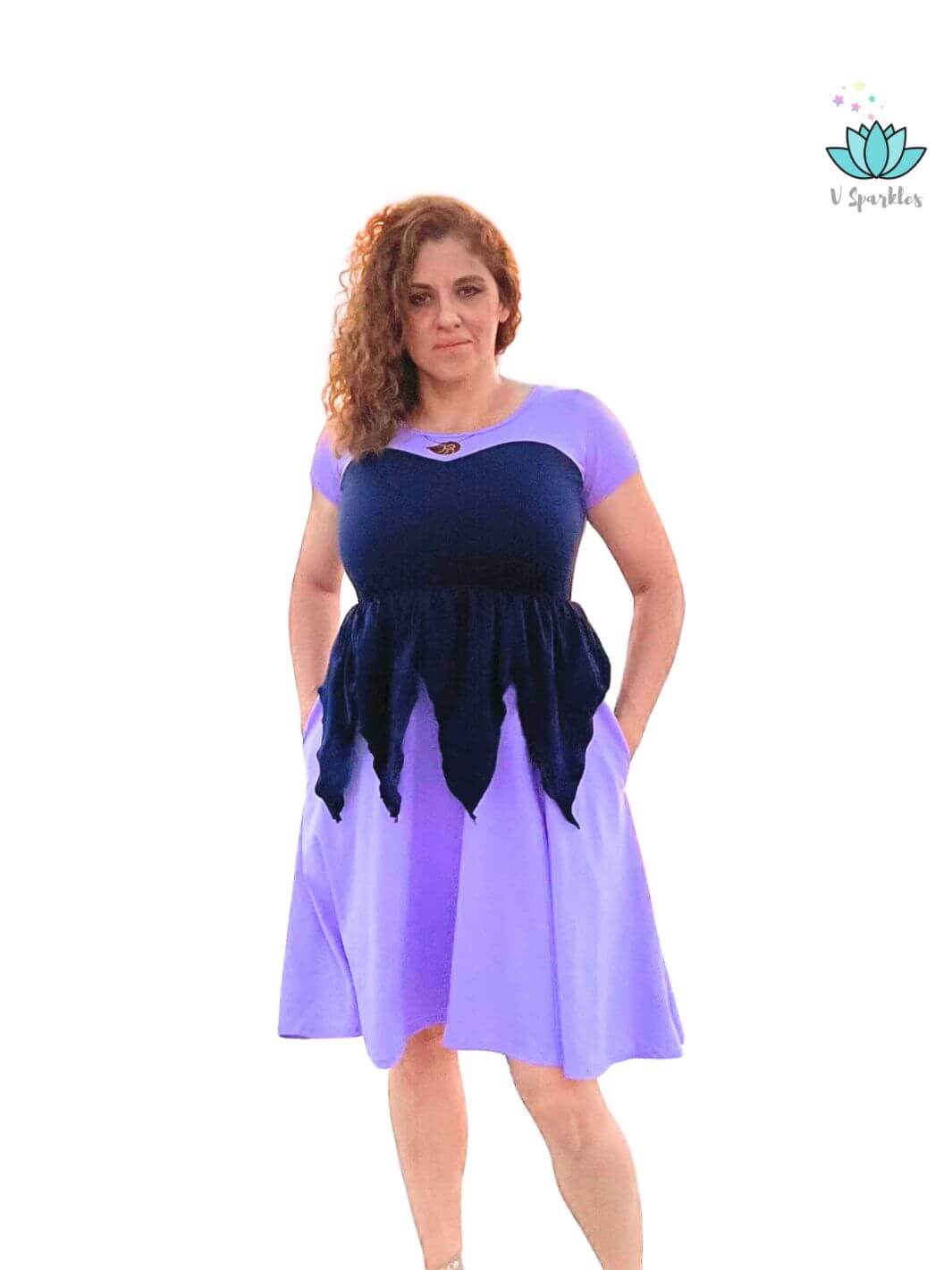 Channel your inner sea witch with this stunning Ursula-inspired dress, designed for those who dare to embrace their magical side. The dress features a beautifully crafted design with a combination of deep purples and blacks, embodying the sea with;s iconic look. With flowing fabric and a flattering fit, this dress is perfect for Halloween parties, themed events, or simply making a statement.