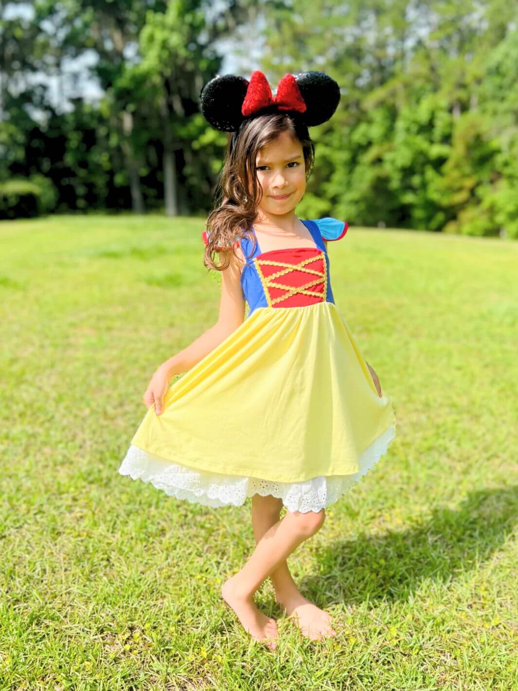 Snow White-Inspired Birthday Dress for Kids: A cute Snow White costume perfect for birthday parties, Disneybounding, and dress-up fun. This outfit makes a great Halloween costume or self-treat for kids who love to play pretend.