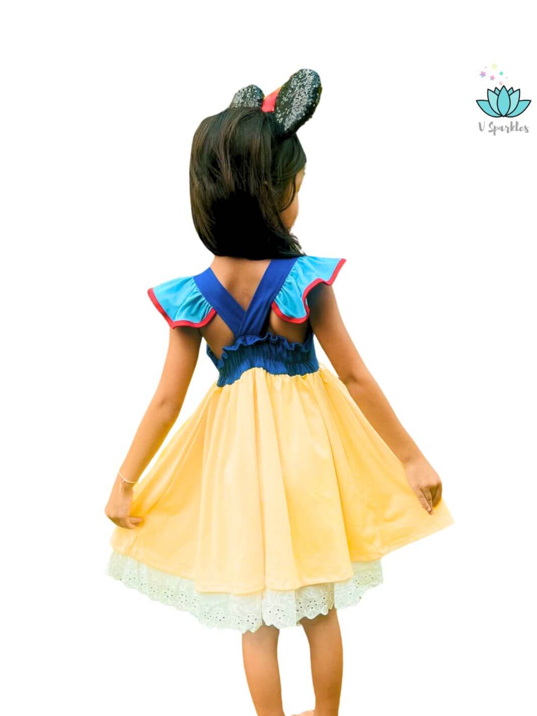 Snow White Disneybounding Kids Dress: A charming Snow White-inspired dress perfect for Disneybounding, pretend play, or a magical birthday celebration. Great for dress-up games, Halloween costumes, or a stylish gift for kids.