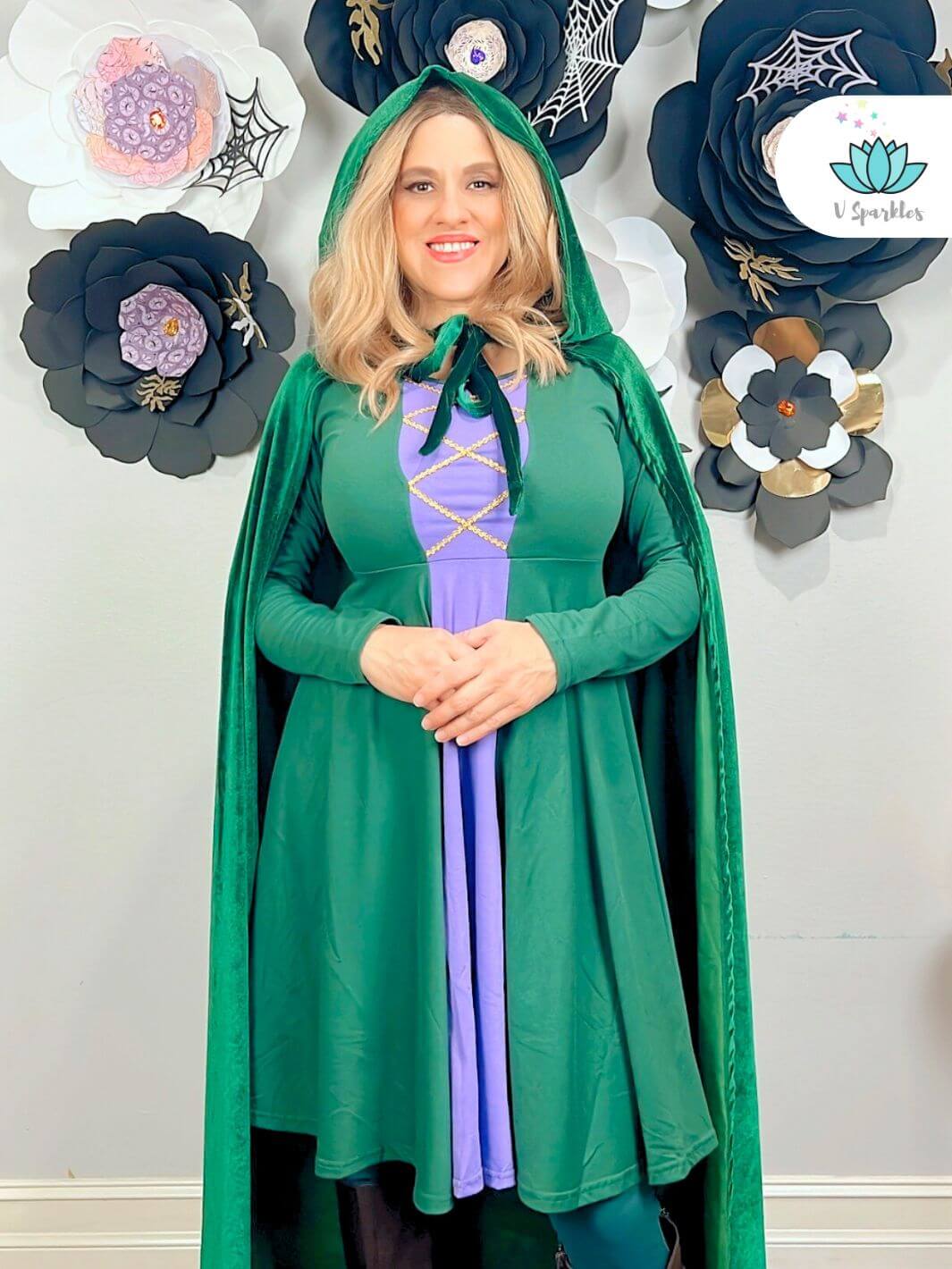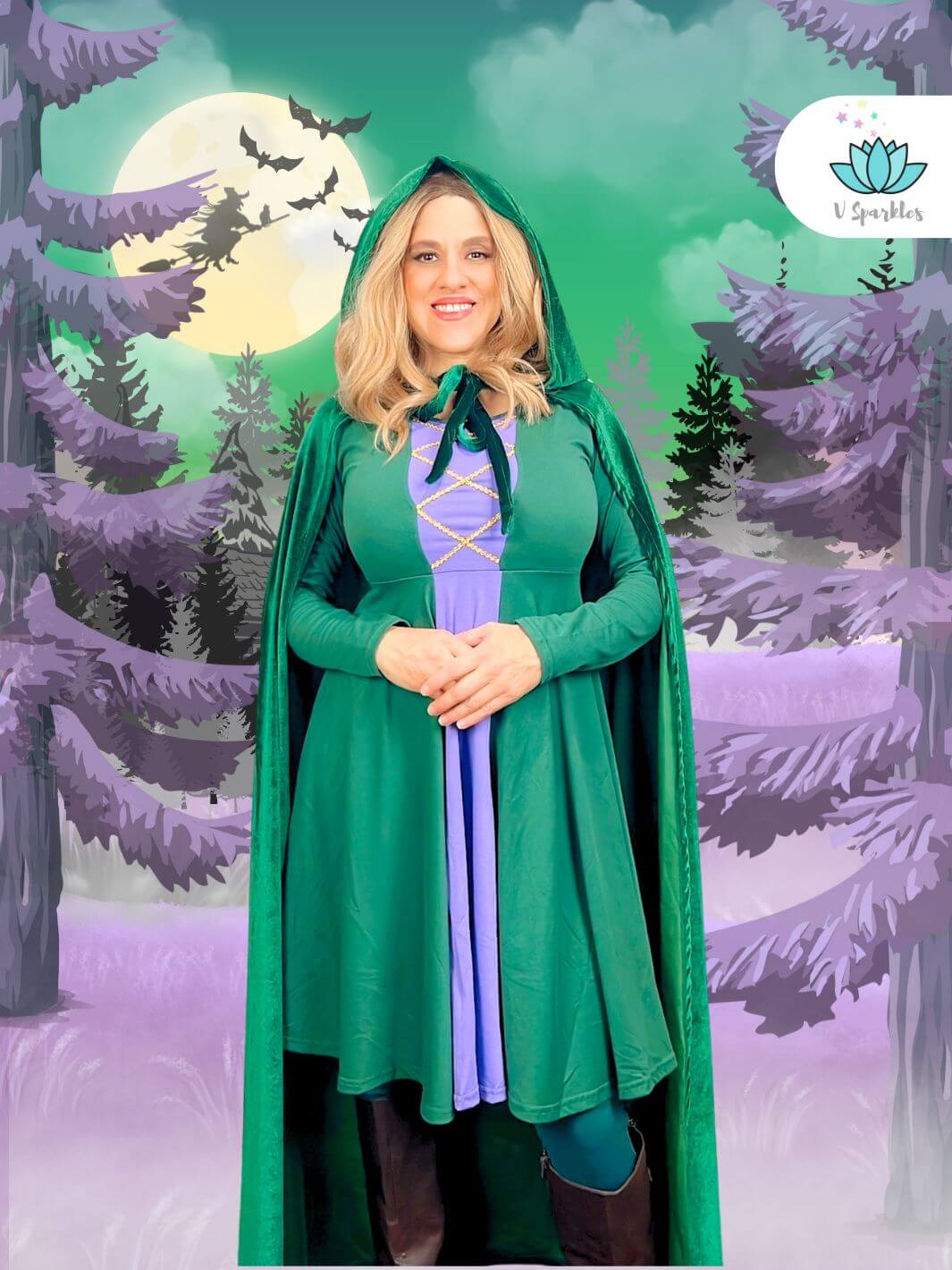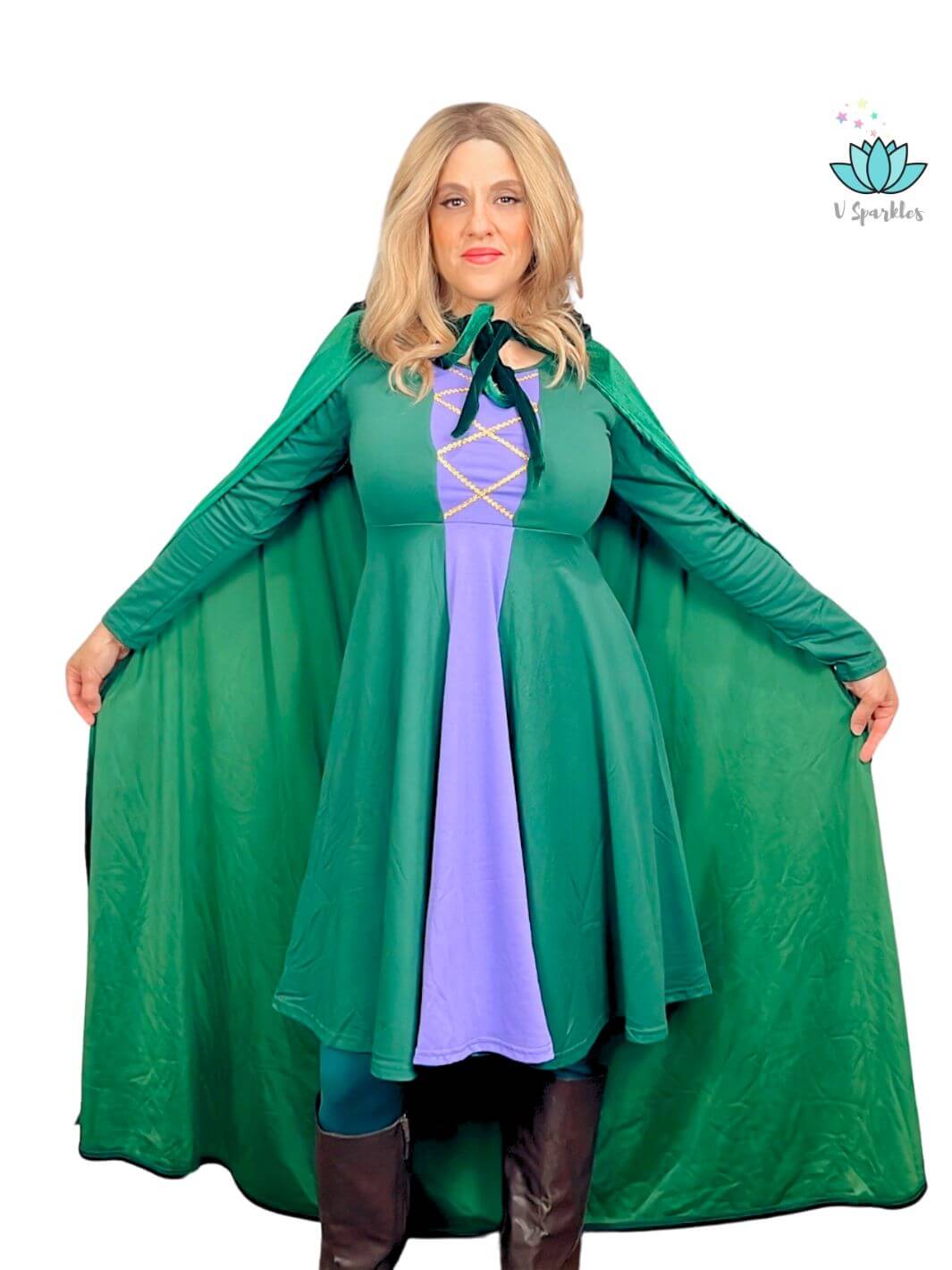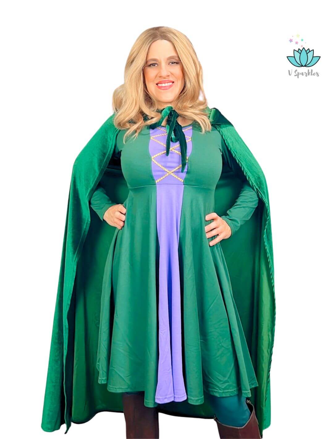 Winifred “Winnie” Sanderson, the charismatic and cunning witch from Hocus Pocus, is known for her cleverness, wit, and iconic green dress. As the leader of the Sanderson Sisters, Winnie’s style is as unforgettable as her magical presence. Every adult with her flair for the drama and love for all things witchy would love to get into a Winnie dress up.