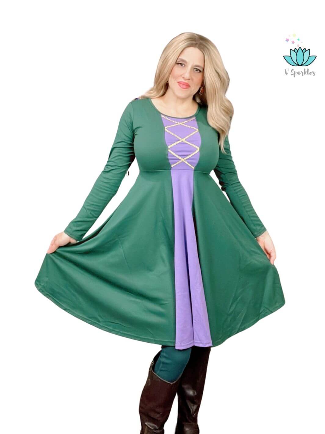 Introducing our movie-inspired Green Dress Witch Outfit.